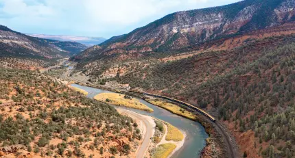 Depart Moab in the afternoon and travel onboard Rocky Mountaineer. You'll cross the Utah-Colorado border with stunning mountain views in the background before arriving in the resort town of Glenwood Springs. Enjoy a delicious locally- inspired dinner onboard as well as a selection of included snacks and both alcoholic and non-alcoholic beverages. Overnight in the delightful mountain town of Glenwood Springs.
